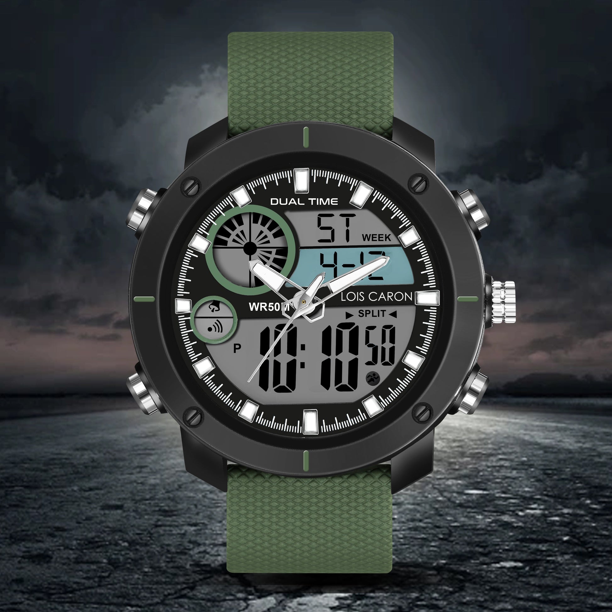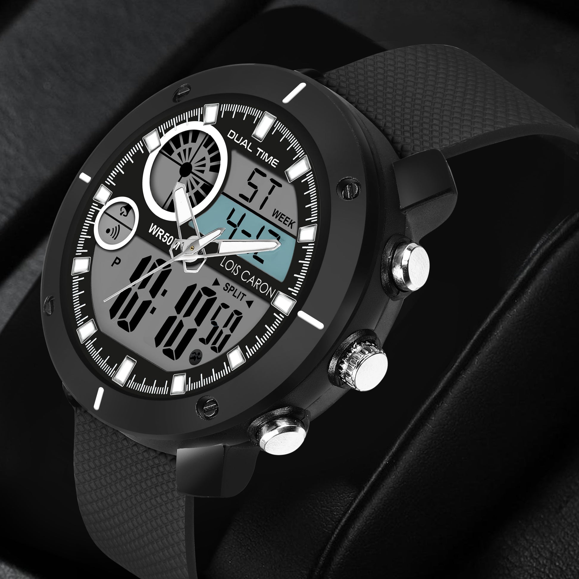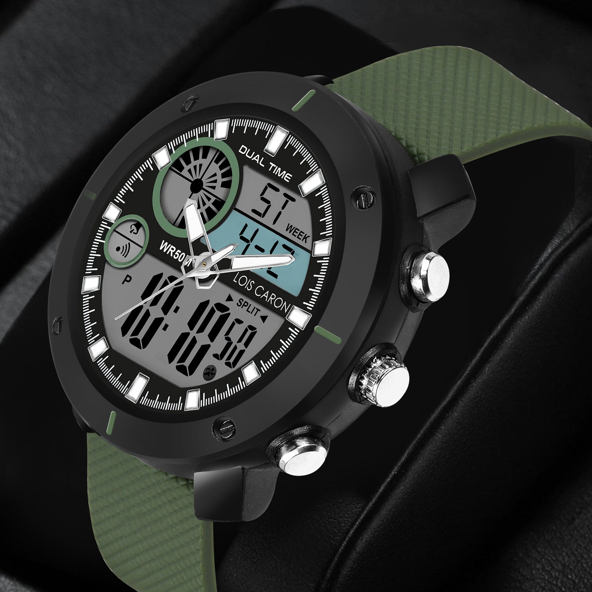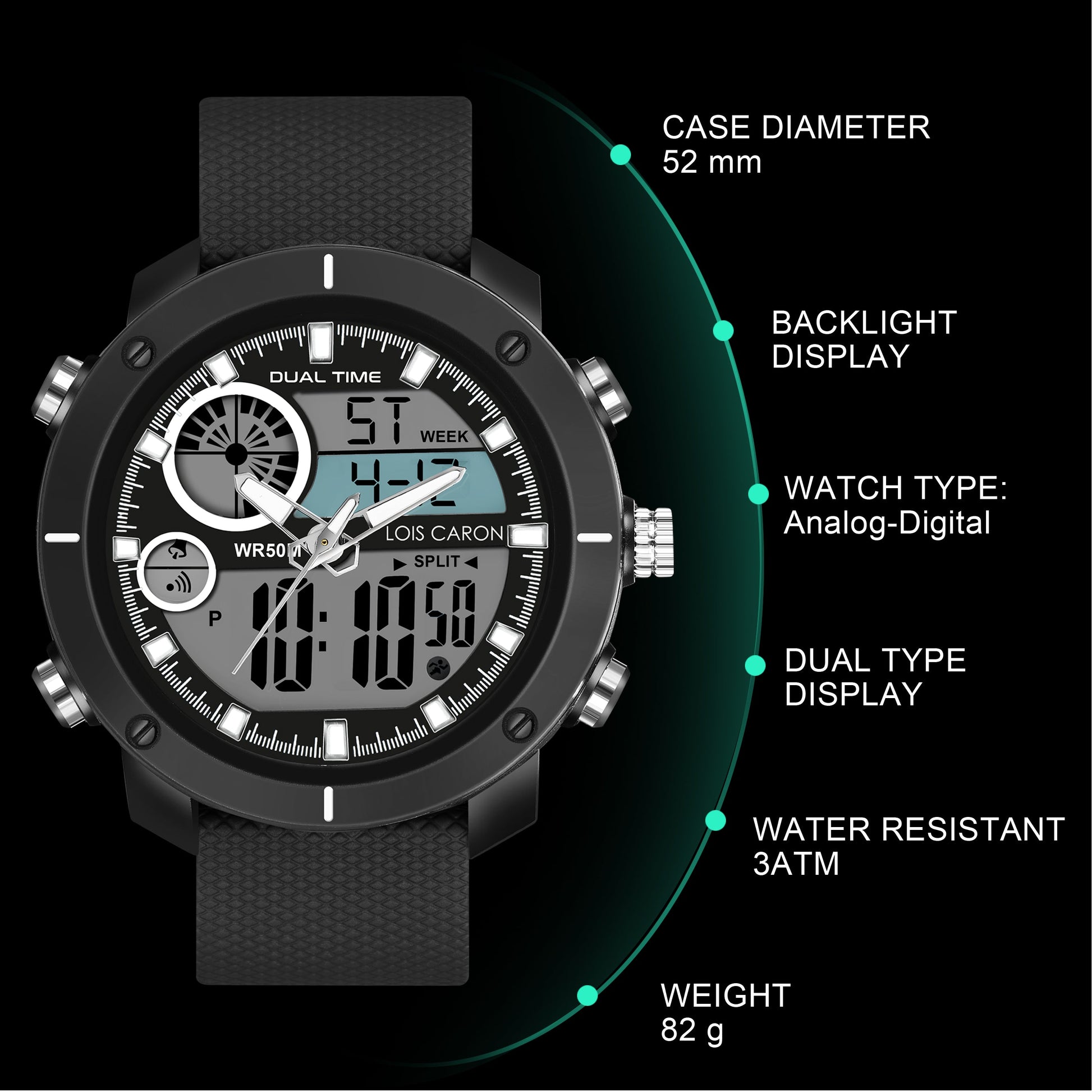 LOIS CARON Analog-Digital Sports Watch: Chronograph, Dual Time, Alarm, Stopwatch, Water-Resistant, Shock-Resistant, Back Light Display- The Perfect Watches For Men