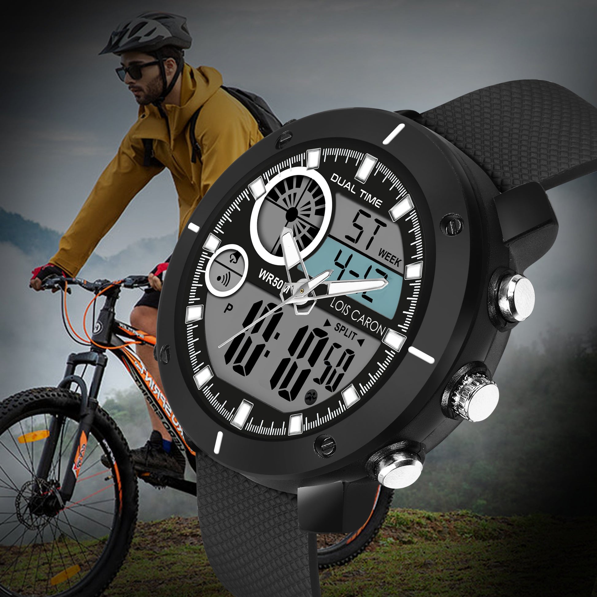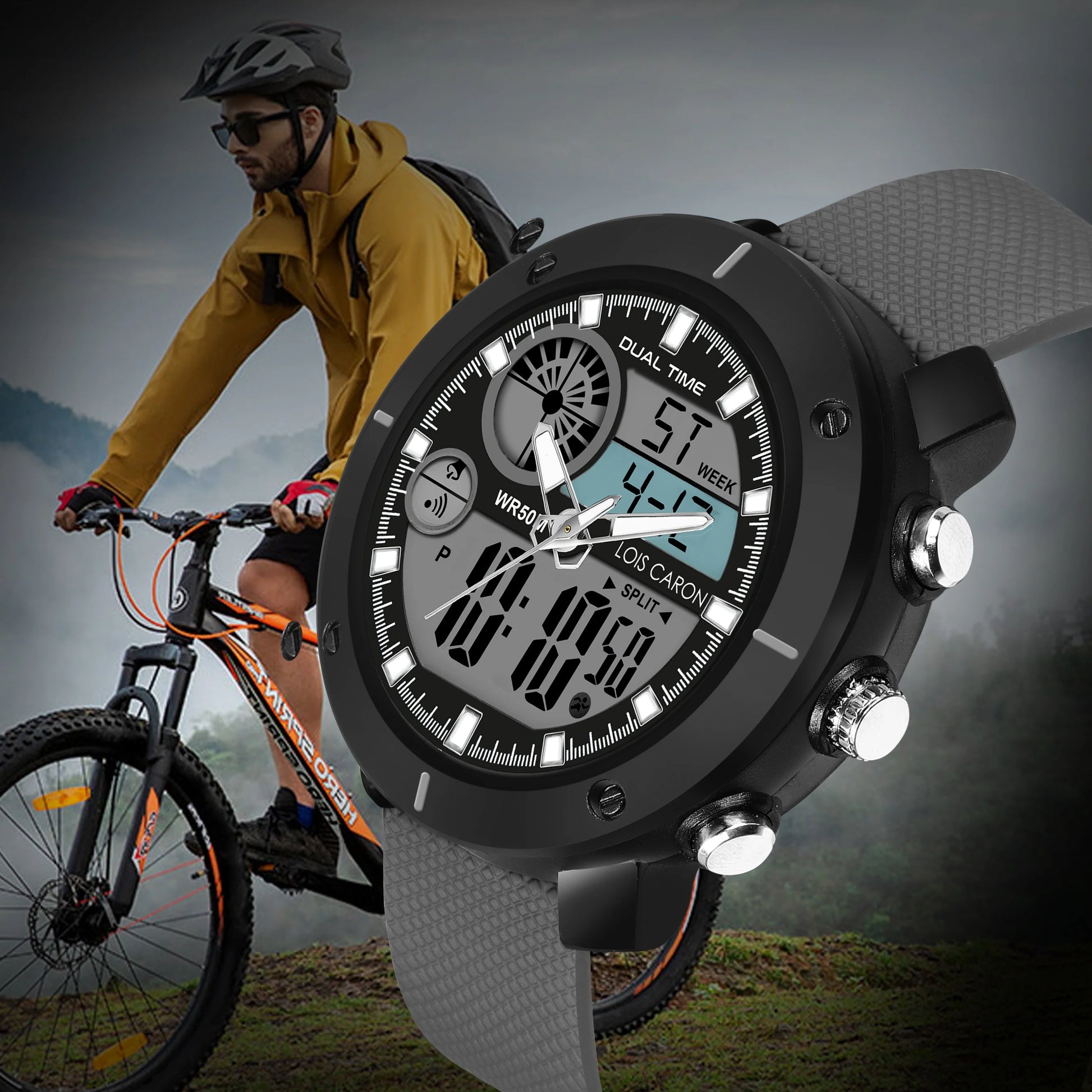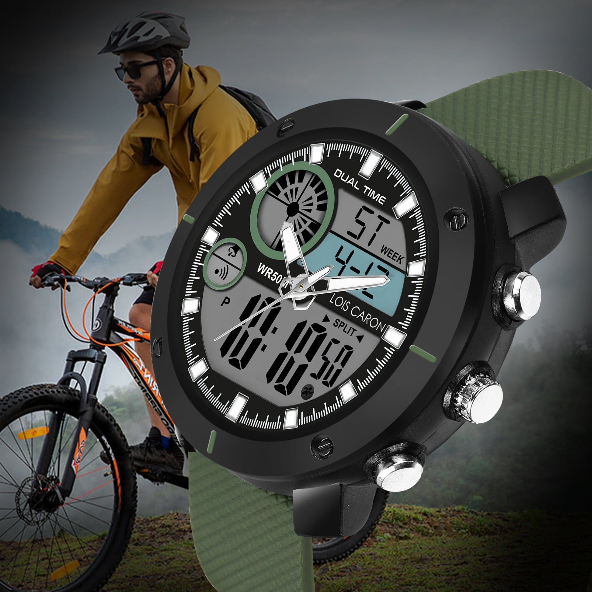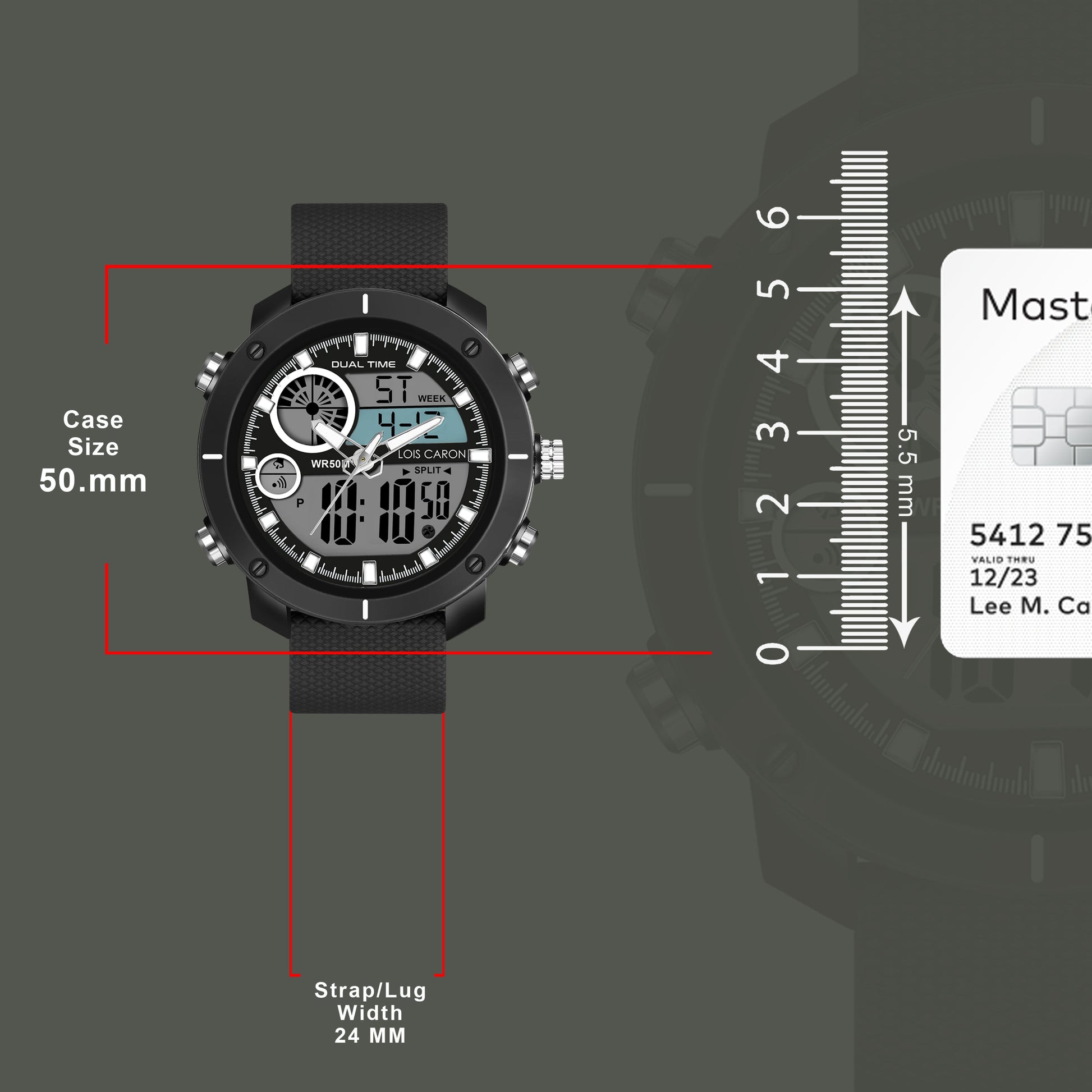 LOIS CARON Analog-Digital Sports Watch: Chronograph, Dual Time, Alarm, Stopwatch, Water-Resistant, Shock-Resistant, Back Light Display- The Perfect Watches For Men